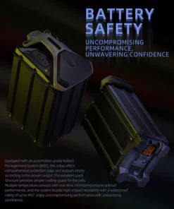 Battery Management System (BMS): Automotive-grade BMS with real-time temperature monitoring and IP67 waterproof rating ensures optimal performance and safety.